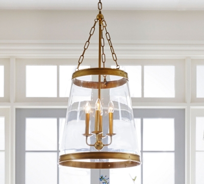 Dumora Antique Brass Drum Pendant Lamp - Farmhouse Style Lamp for Living Room